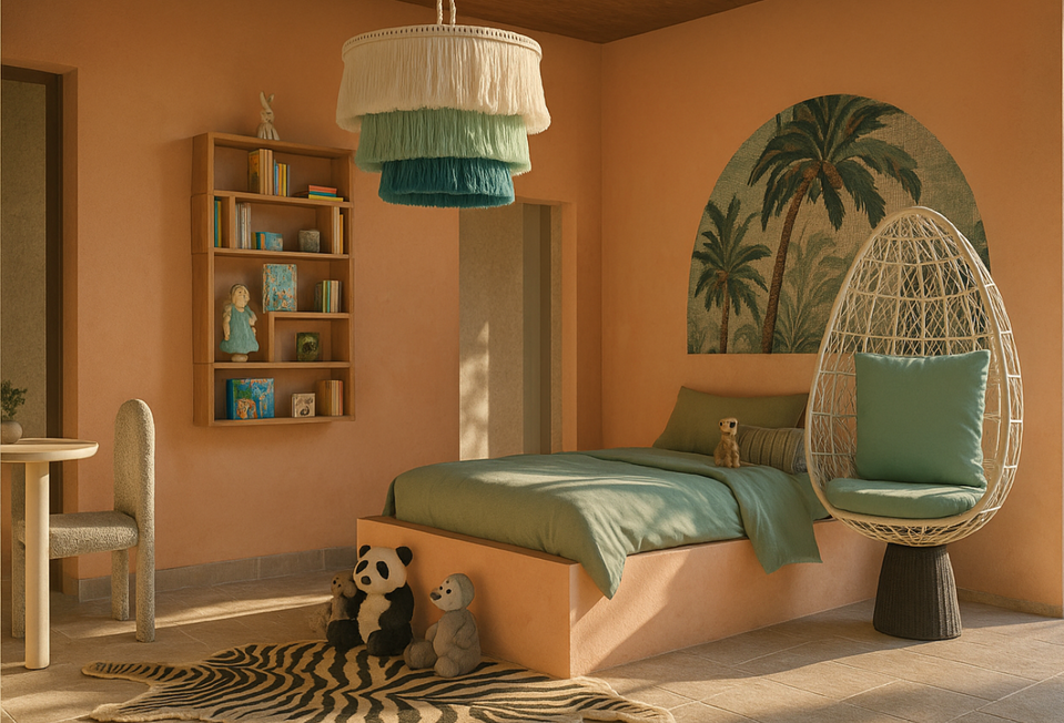This home blends Soft Brutalism with tropical modernism. It is a sculptural, concrete-based space softened by tropical light, natural textures, and sun-washed tones of green, blush, and warm neutrals. The design is clean, expressive, and built for calm, intentional living.